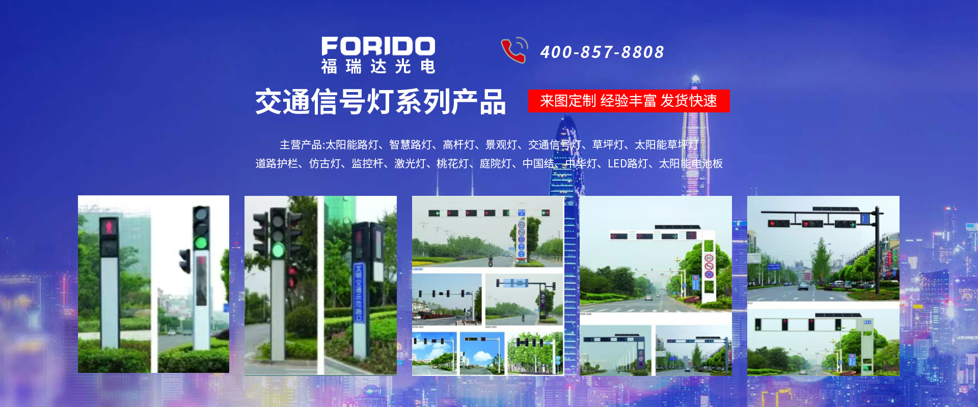 揚(yáng)州福瑞達(dá)光電科技有限公司位于淮左名都?xì)v史文化名城、中國(guó)路燈制造基地?fù)P州市北郊菱塘工業(yè)園,公司占地面積76000平方米,注冊(cè)資金10518萬(wàn)元,擁有高級(jí)技術(shù)嫻熟的員工280多人,擁有大型折彎?rùn)C(jī)、激光切割、數(shù)控注塑機(jī)、壓鑄機(jī)、自動(dòng)埋弧焊、氣焊、彩色粉末靜電噴塑等大型自動(dòng)化設(shè)備,我公司是一家集設(shè)計(jì)、研發(fā)、生產(chǎn)、銷售、施工安裝服務(wù)為一體的戶外交通照明產(chǎn)品制造商,主要生產(chǎn)智慧路燈、太陽(yáng)能路燈、LED路燈、高桿燈、景觀燈、交通信號(hào)燈、交通標(biāo)志牌、通信鐵塔、路跨鋼結(jié)構(gòu)、公交站臺(tái)、太陽(yáng)能光伏組件、景點(diǎn)亮化、樓宇亮化工程的設(shè)計(jì)施工等。公司秉承開拓創(chuàng)新、銳意進(jìn)取、精誠(chéng)服務(wù)的企業(yè)精神,堅(jiān)持以“誠(chéng)信為本、技術(shù)為先、服務(wù)是金”的合作理念,我們憑借先進(jìn)的制造工藝、優(yōu)質(zhì)的產(chǎn)品質(zhì)量、合理的市場(chǎng)價(jià)格和完善的售后服務(wù)贏得了廣闊的市場(chǎng)和客戶的信賴。 我公司已通過ISO9001質(zhì)量體系認(rèn)證、ISO14001環(huán)境管理體認(rèn)證,CQC產(chǎn)品認(rèn)證,中國(guó)節(jié)能產(chǎn)品認(rèn)證,通過“CCC”強(qiáng)制性產(chǎn)品認(rèn)證,具有市政總承包,照明,交安,設(shè)計(jì)等資質(zhì)···